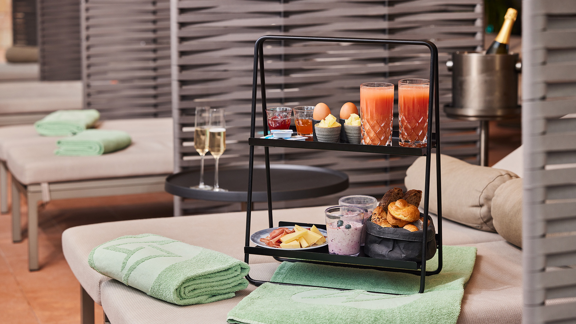 Frühstück im Bett war gestern. Wie wäre es mit einem Brunch im FORTYSEVEN? Im Winter können Sie sich auf komfortablen Doppelliegen in ruhige Zweisamkeit im Innenbad, mit Blick auf das gegenüberliegende Limmatufer, zurückziehen. In den warmen Sommermonaten entspannen Sie zu zweit auf einem Doppelbett, draussen auf der Liegewiese und direkt vor dem Natur-Schwimmbecken. Aufgrund des unsicheren Wetters wird im Sommer automatisch ein Daybed im Innenbereich mitreserviert. Egal zu welcher Jahreszeit, mit dem Liegestuhlservice verwöhnen wir Sie per Knopfdruck mit einem kulinarischen Brunch-Highlight.